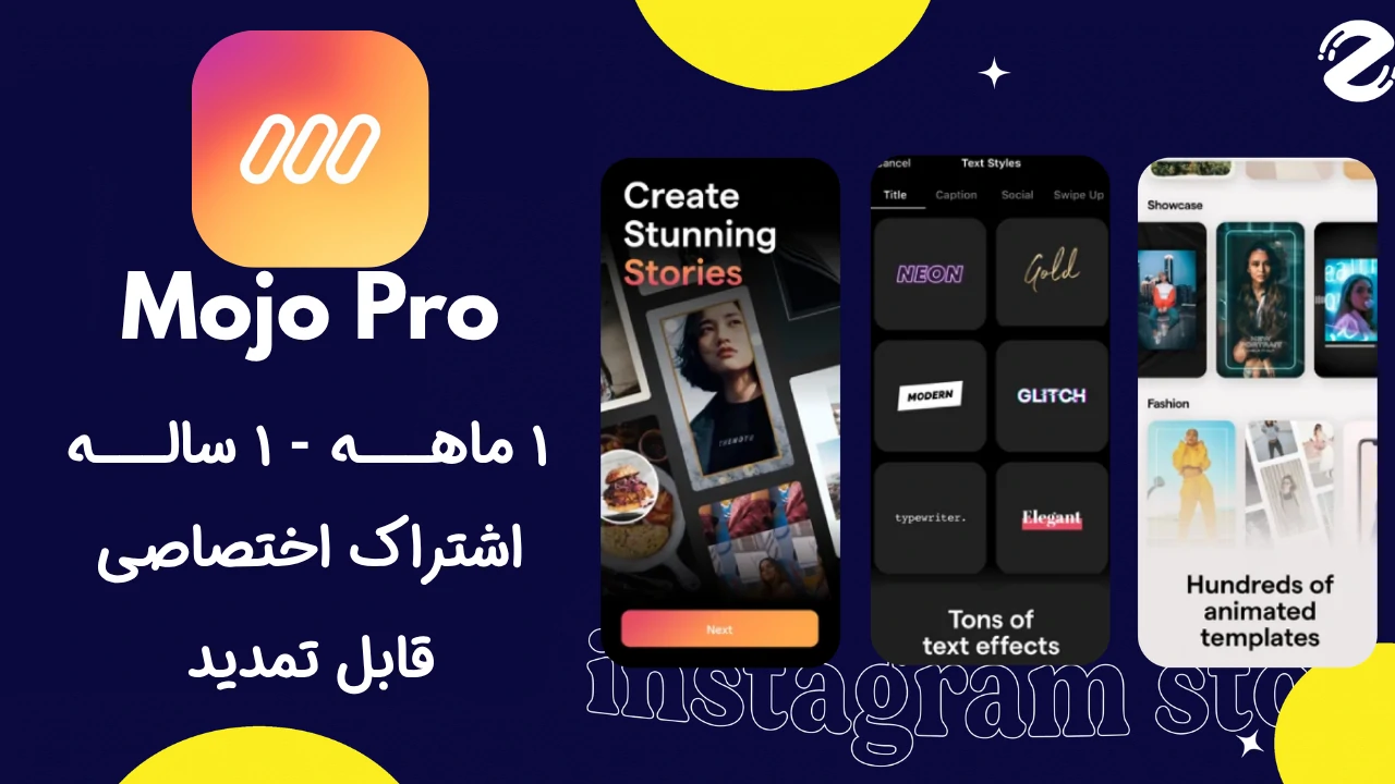 تولید محتوا برای بارگزاری در اینستاگرام با تولید محتوا در سایر پلتفرمها و برنامهها مثل تلگرام، لینکدین، یوتیوب و … متفاوت خواهد بود. در نتیجه این امر نیاز به داشتن برنامه اختصاصی برای ساخت استوری و تولید محتوا مناسب برای پست و Reels بیش از پیش حس میشود. برای پیدا کردن یک ابزار خارق العاده برای تولید و ایجاد استوریهای گوناگون و ریلزهای جذاب در اینستاگرام پیشنهاد ما خرید اکانت Mojo Pro است. اگرچه هدف شرکت عرضهکننده سرویس موجو بهبود بخشیدن استوریهای اینستاگرامی قبوده است، اما با کمک آن میتوانید در سایر پلتفرمها نیز تولید محتوا کنید. با استفاده از موجو میتوان ویدئوها و ریلزهای حرفهای ساخت که مناسب بارگزاری در اینستاگرام، تیک تاک و سایر شبکههای اجتماعی هستند.